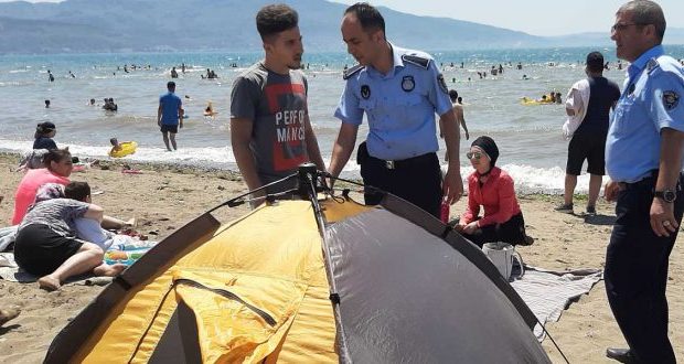 Konuyla ilgili günlerdir devam eden şikâyetleri değerlendiren Gemlik Belediyesi ekipleri, emniyet güçlerinin desteği ile çadır kuran kimselere uyarıda bulunarak bölgede uyulması gereken kuralları anlattı, çadırların kaldırılmasını talep etti. Kimi çadırcıların zabıta ve polis karşısındaki rahat tavırları dikkatlerden kaçmadı. Sahil bölgesinde kurulması yasak olan çadırlar bir süre sonra sahipleri ile bir süre sonra ekiplerce toplandı.