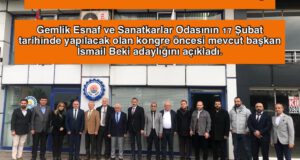 Gemlik Esnaf ve Sanatkarlar Odasının 17 Şubat tarihinde yapılacak olan kongre öncesi mevcut başkan İsmail Beki adaylığını açıkladı.